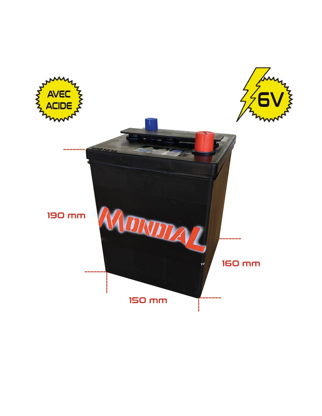 BATTERIE 6 VOLTS  73AH. 600 EN. SANS ACIDE VENTE AU COMPTOIR UNIQUEMENT
