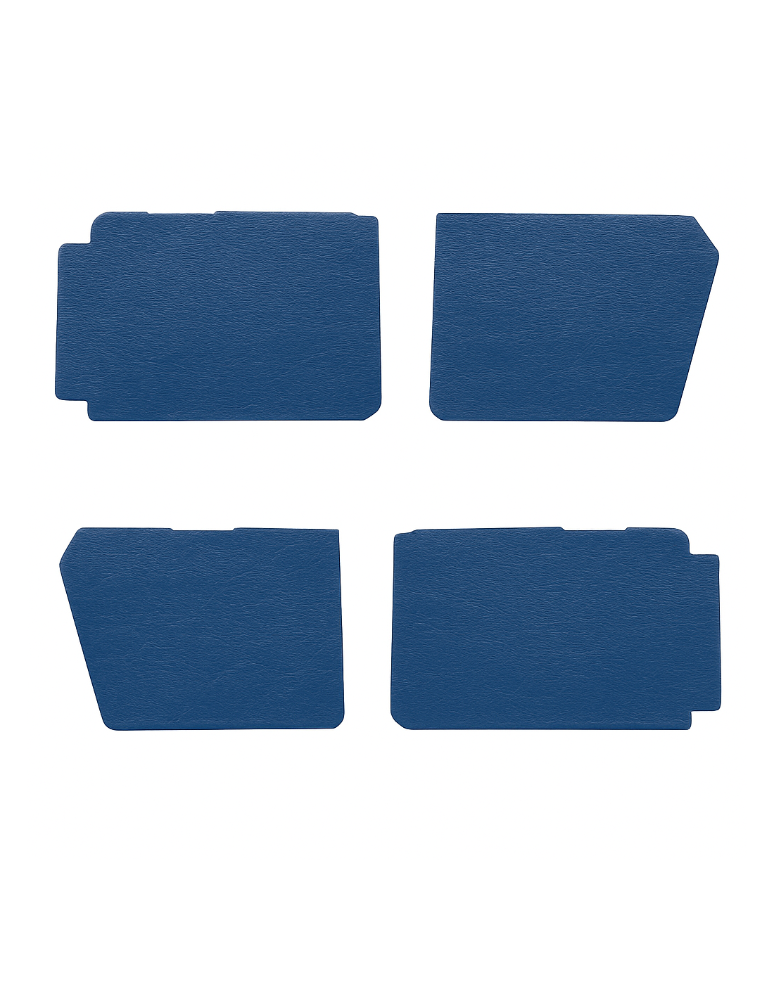 Restaurez l’intérieur de votre 2CV avec ce lot de 4 panneaux de porte grand modèle (REF : KIT56), conçu pour les versions équipées du bandeau plastique intégrant le système de serrure. Ce kit garantit une finition soignée, fidèle à l’origine, grâce à une découpe précise et un revêtement en simili de qualité supérieure.