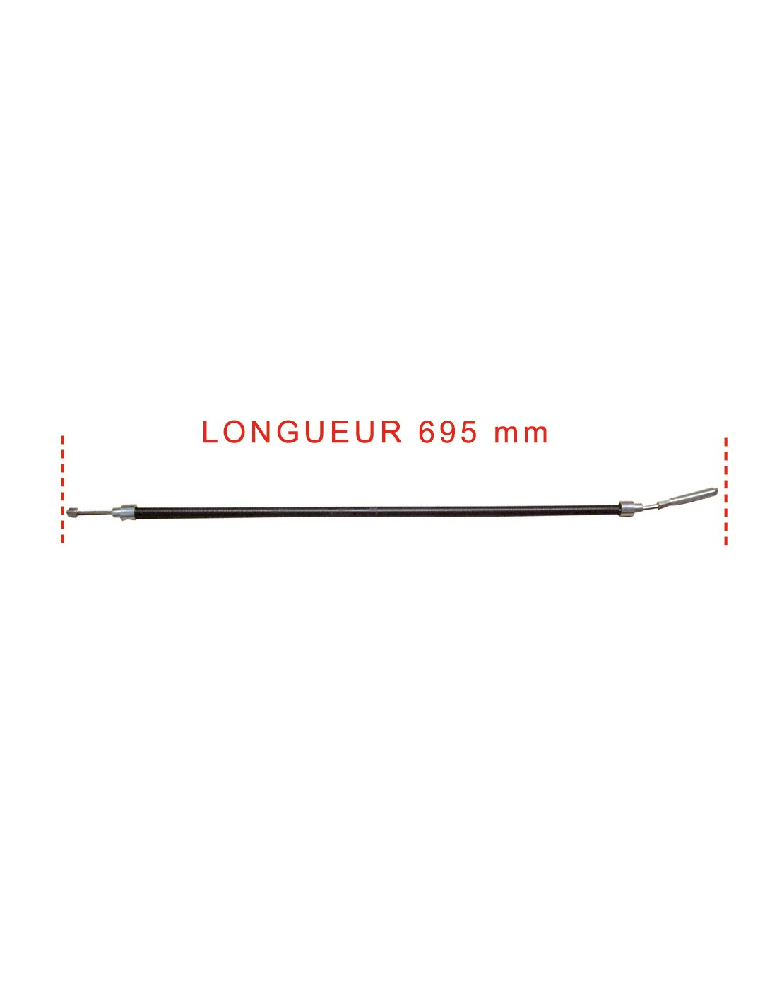 Ce câble mesure 695 mm de longueur.il possède 4 cm de réglage coté étrier