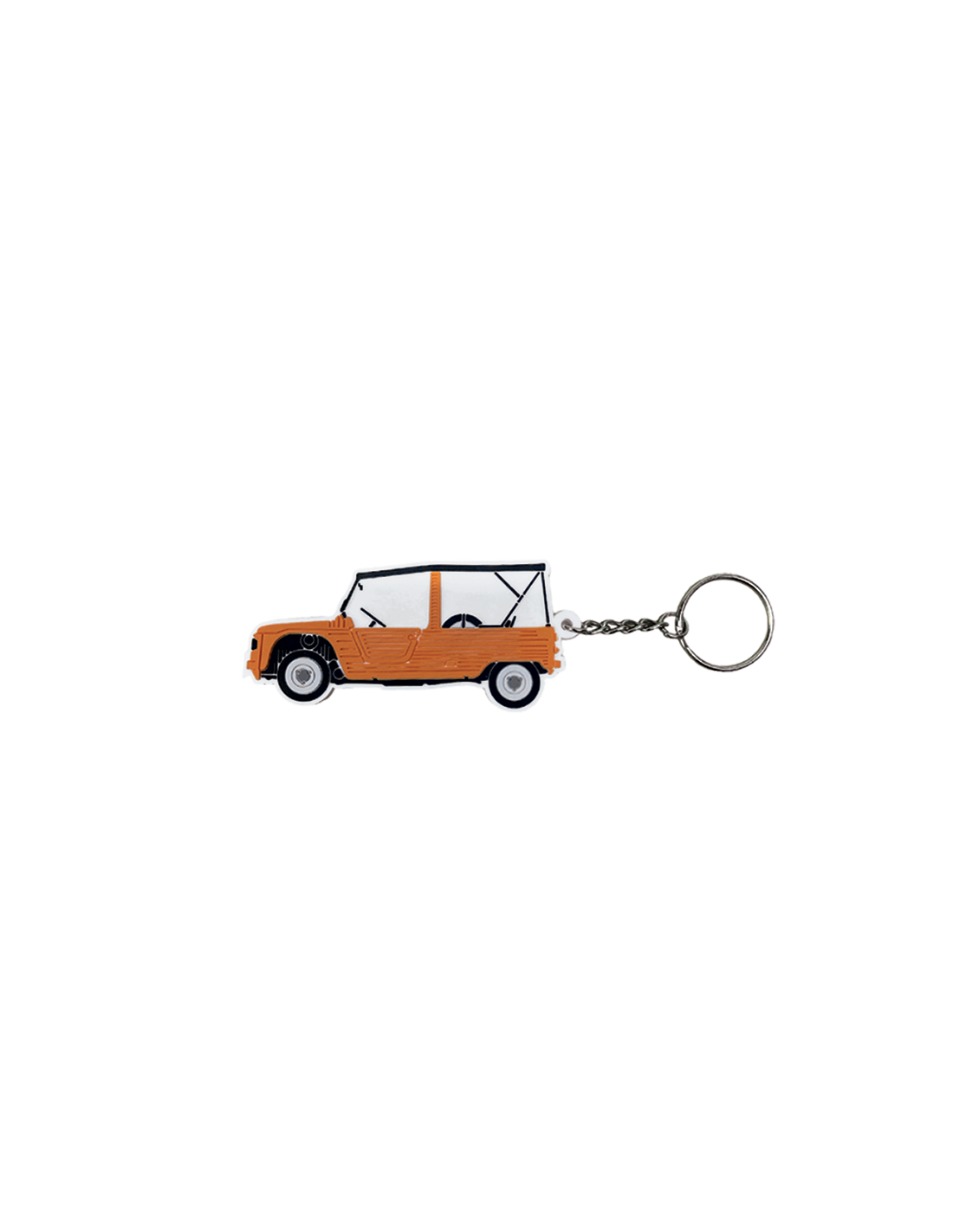 Ajoutez une touche vintage et colorée à vos clés avec ce porte-clé Méhari orange en caoutchouc (REF : 2775MOR). Souple, résistant et agréable au toucher, il représente la silhouette emblématique de la Citroën Méhari dans un coloris orange vif, idéal pour les passionnés du mythique cabriolet utilitaire.