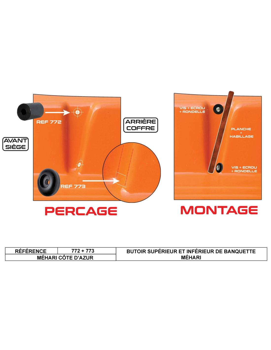 Ce butoir inférieur sert a la fixation de la planche qui reçoit la banquette arrière de la Méhari, il se monte directement sur la carrosserie et empêche la planche de basculer vers l'avant.