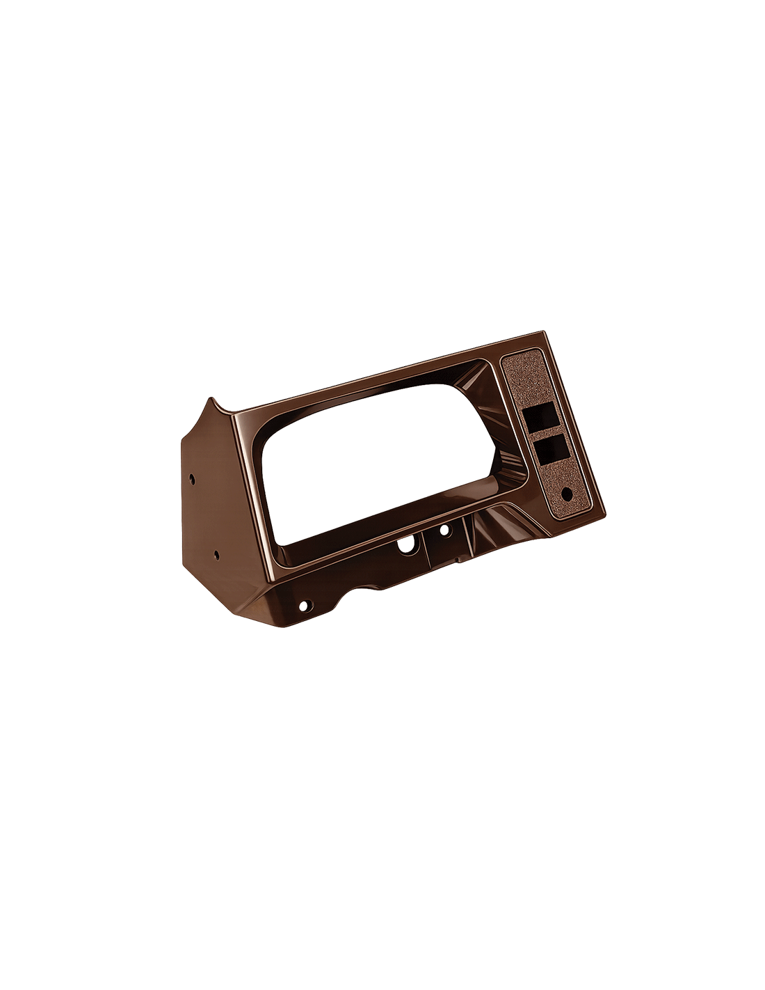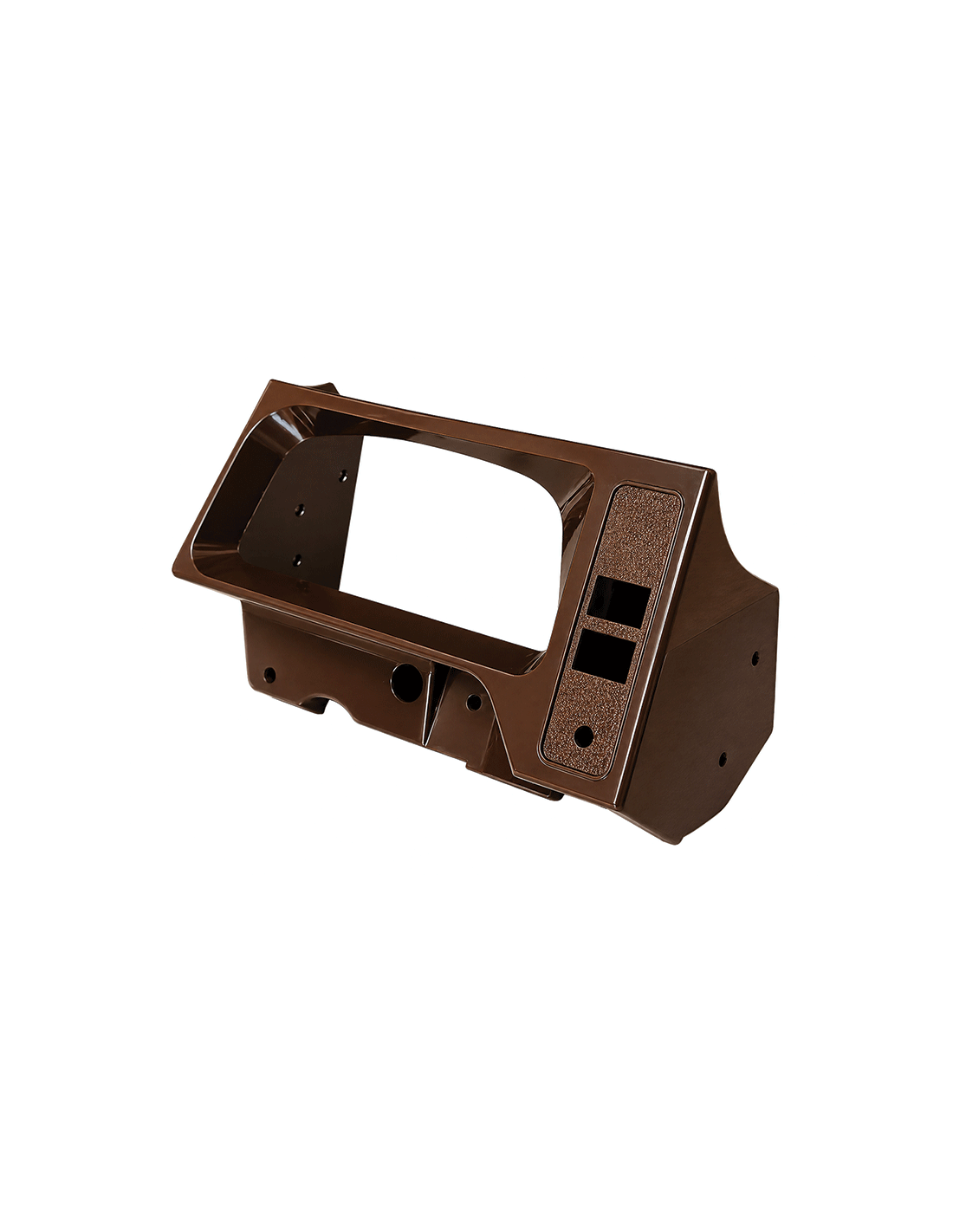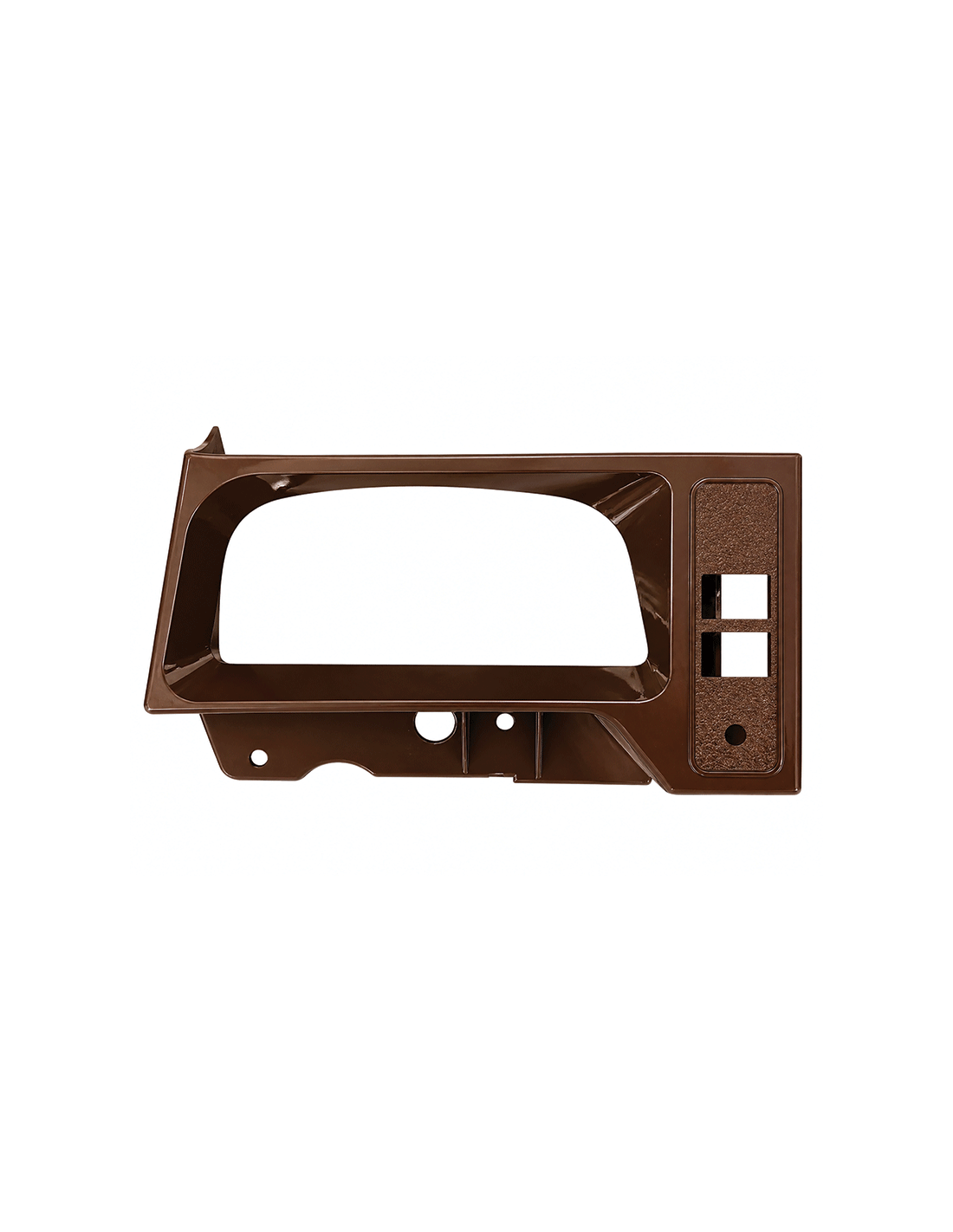 Support plastique marron pour fixation de compteur grand modèle sur 2CV. Pièce adaptable avec découpes pour interrupteurs et voyants. Permet un montage fonctionnel avec un bon rapport qualité/prix. Ajustements possibles selon version. Réf. 3197.