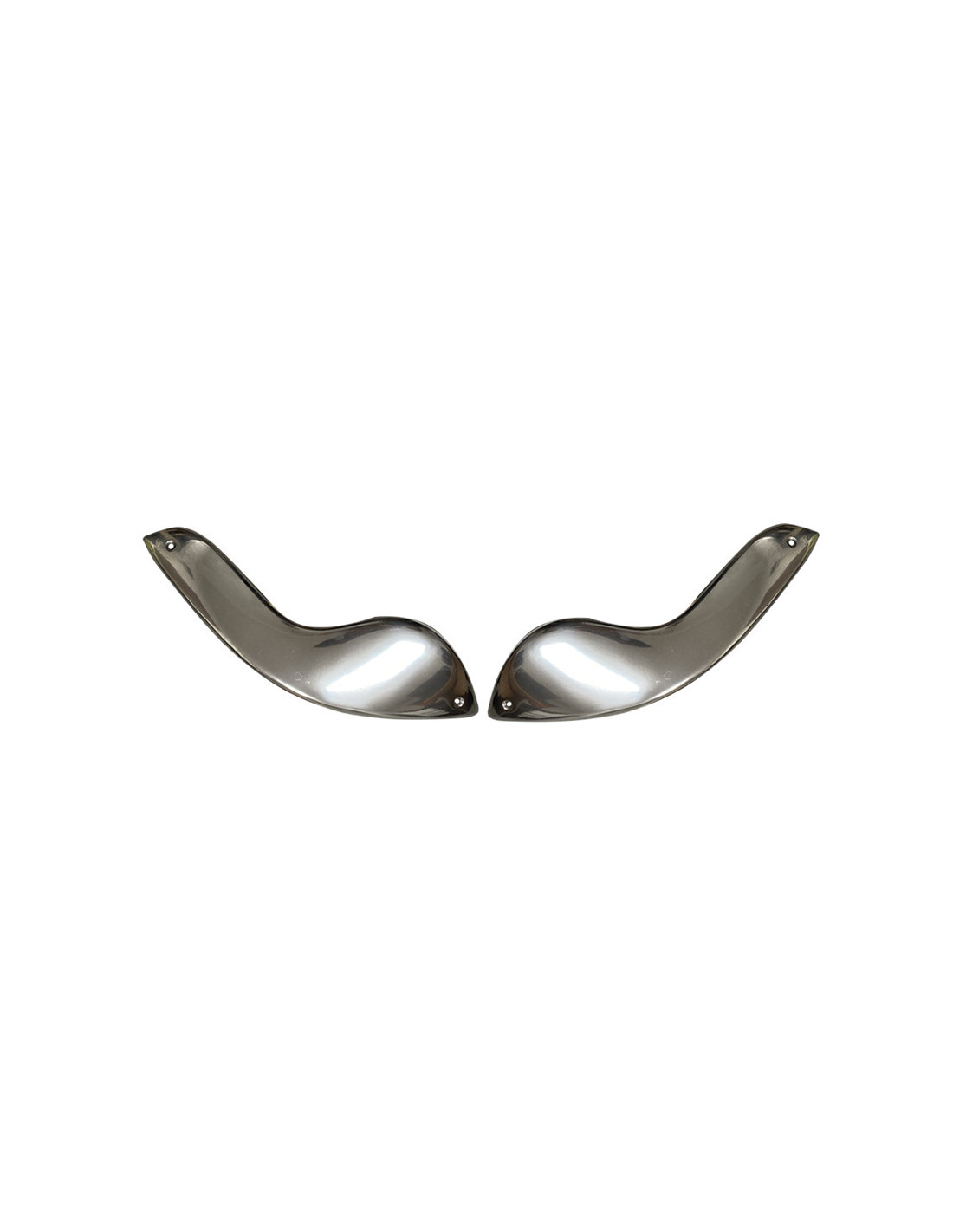 Paire de sabots avant d’aile pour 2CV berline, à monter sous les clignotants. En aluminium, fixation par rivets ou vis. Fait partie du kit réf. 1367. Réf. 1382.