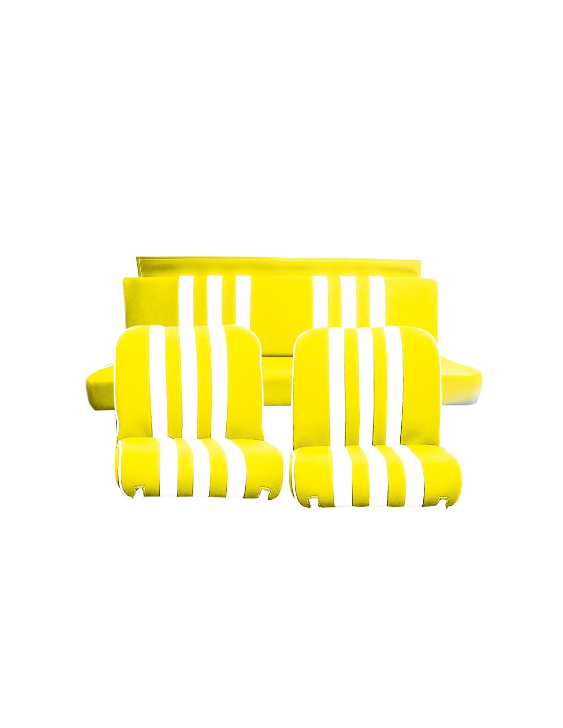 GARNITURES MÉHARI 2 SIÈGES AVANT + BANQUETTE ARR. SKAÏ JAUNE RAYE BLANC